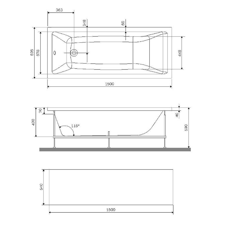 Фронтальная панель для ванны AM.PM Gem 150 W93A-150-070W-P Белая