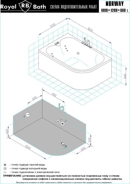 Акриловая ванна Royal Bath - идеальный выбор для создания атмосферы релакса и умиротворения, как в просторной в ванной комнате, так и в комнатном санузле. Основным преимуществом ванны из акрила считается её малый вес, высокая гигиеничность данного материала и низкая теплопроводность, долго сохраняющая комфортную температуру воды.Форма ванны Royal Bath замечательно подойдет к любому интерьерному решению, в различных вариантах размещения внутри ванной комнаты. Пристенная установка - это наиболее традиционный вид установки, а при использовании декоративного экрана пространство под ванной можно использовать как место хранения моющих средств. Оптимальная глубина позволяет принимать ванну с максимальным комфортом и полным расслаблением. Ванна Royal Bath выполнена со строгим соблюдением всех значительных элементов современного стиля.Благодаря тому, что родина бренда Royal Bath - Россия, можно смело быть уверенным в непревзойденном качестве и долговечности ванны, так как производство полностью соответствует стандартам качества. Акриловая ванна Royal Bath - это незаменимый, основной элемент любой ванной комнаты, без которого невозможно обойтись, ни в многоквартирном доме, ни в загородном коттедже.Комплектация гидромассажной ванны:- акриловая ванна Norway 180x120x66 с каркасом;- панель фронтальная к ванне Norway;- гидромассажная система на 6 форсунок;- спинной массаж на 6 форсунок;- слив-перелив для ванны полуавтомат 60 см.Ожидаемый срок поставки 7 дней.Обратите внимание: данная позиция поставляется под заказ! Товар поставляется по 100%-ной предоплате.Данный товар является заказным и имеет индивидуально-определенные свойства.