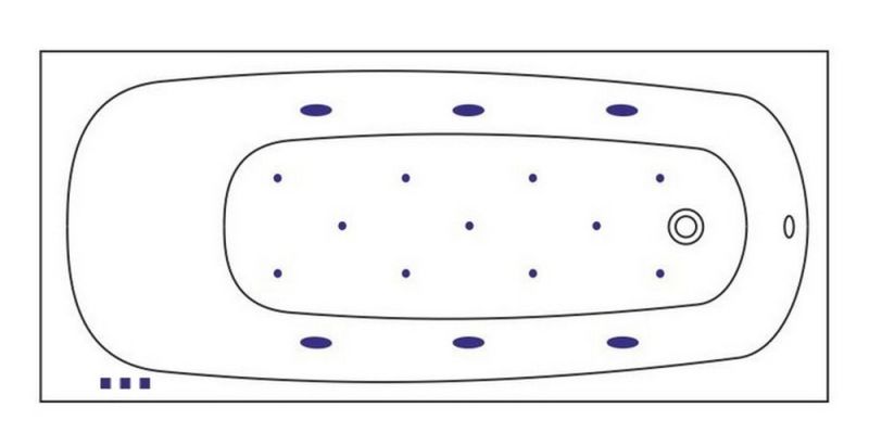 - Аэромассажная система (11 форсунок AERO-JET) с функцией регулировки интенсивности массажа;