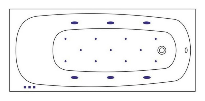 - Аэромассажная система (11 форсунок AERO-JET) с функцией регулировки интенсивности массажа;