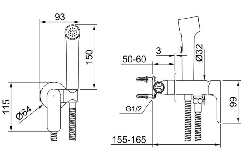 Гигиенический душ со смесителем Raglo R03.52 хром купить