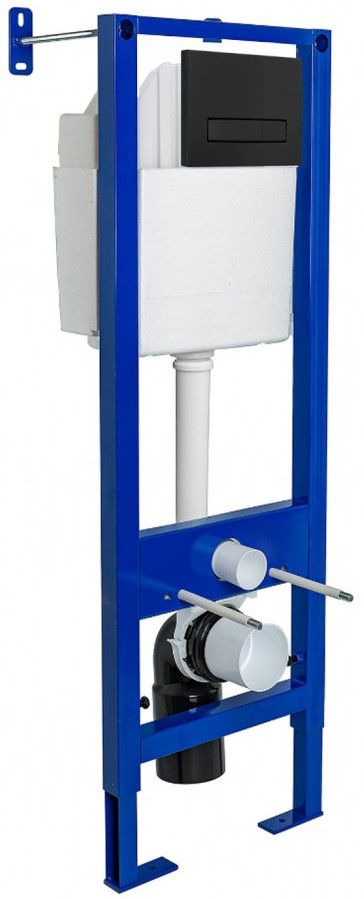 Стальная рама с антикоррозийным покрытиемРасчётная нагрузка до 400 кгНожки регулировкой высотыМежосевое расстояние под крепежные шпильки унитаза 18 и 23 смБачок с функцией шумоподавленияДвухрежимная кнопка смыва, черное покрытие Soft TouchЭконом слив 3л, полный слив настраивается от 5,5 до 8,5лМонтажный кнопочный узел, полный комплект патрубков, лекала для монтажа отверстий.