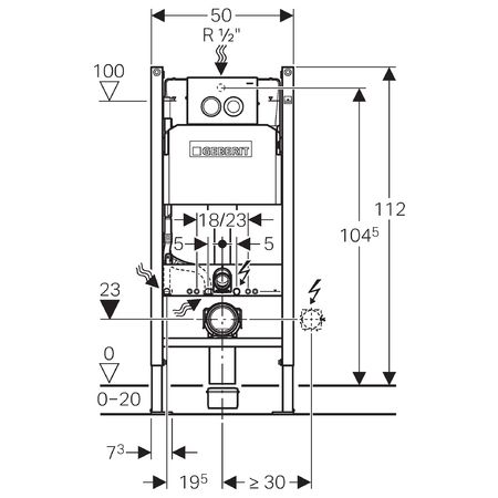 - Оснащен трубкой подвода воды для подсоединения унитазов-биде Geberit AquaClean