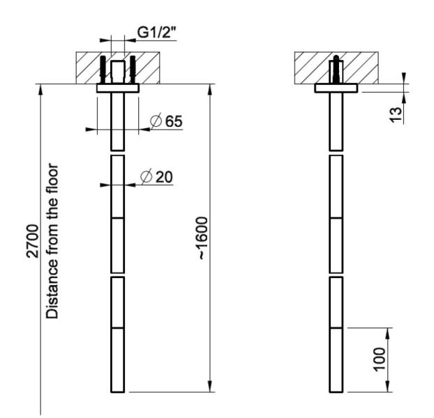 Потолочный излив Gessi 316 Flessa высотой 1600 мм выполнен в цвете Black Metal Brushed PVD — выразительный элемент для нестандартных дизайнерских решений. Он предназначен для подключения к смесителю удаленного управления и монтируется непосредственно в потолок.