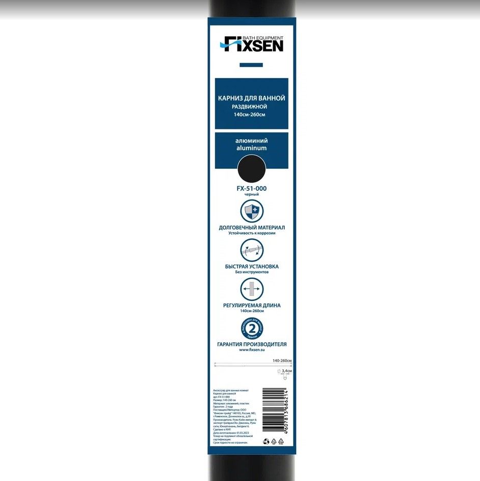Карниз для ванной Fixsen раздвижной алюминий-черный 140-260 см (FX-51-000) купить