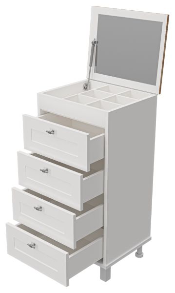 Ванная комната — это не просто пространство для гигиенических процедур, но и уголок для уединения и расслабления. В этом свете маленький комод с зеркалом становится неотъемлемой частью интерьера, добавляя нотку элегантности и функциональности.Комод, выполненный из качественного материала, гармонично вписывается в стиль как классической, так и современной ванной комнаты. Его компактные размеры позволяют разместить предметы первой необходимости — от косметики и ароматических свечей до полотенец и средств личной гигиены, создавая порядок и уют.Зеркало, гармонично интегрированное в конструкцию, не только визуально расширяет пространство, но и выполняет практическую функцию. Утренние и вечерние ритуалы становятся более комфортными, благодаря хорошему освещению и четкому отражению.Этот мебельный элемент может быть оформлен в различных стилях — от минимализма до романтического кантри, придавая ванной комнате индивидуальность и шарм. В итоге маленький комод с зеркалом — это не просто предмет мебели, но и стильное решение, отражающее ваш вкус и предпочтения.