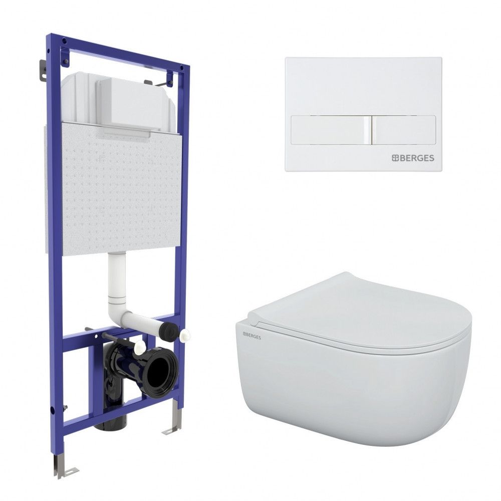 Комплект Berges 4в1 043309: инсталляция NOVUM 525 кнопка L1 белая унитаз EGO Rimless сидение Okus Slim SO купить