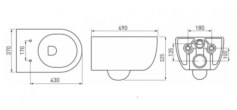 Полный комплект BERGES для монтажа подвесного унитаза. 1. Инсталляция NOVUM525Толщина бачка 80 мм.Межосевое расстояние под крепежные шпильки унитаза 18 и 23 см.Резервуар воды объемом 10 литров с тепло-шумоизоляцией.Уровень шума при давлении 3 бар не превышает 13 дБ.Подвод воды сверху (G1/2 наружная).Объем смыва 3/6 литра с возможностью регулировки. Металлический каркас, окрашенный антикоррозийной эмалью, расчетная нагрузка до 400 кг.Ножки регулировки высоты из оцинкованной стали. Возможность установки в угол. 2. кнопка D5 SoftTouch чернаяABS-пластик 3. унитаз EGO Rimless 49 см,безободковая система смыва, антибактериальное покрытиеэкономия воды, скрытый крепеж 4. сиденье дюропласт Toma Slim SOмикролифт, быстросъем. Все крепежи для установки в комплекте