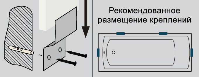Если не использовать крепеж к стене, то в дальнейшем можно столкнуться с проблемой отслоение герметика между ванной и плиткой, который вы будите наносить на финишном этапе установки ванны.