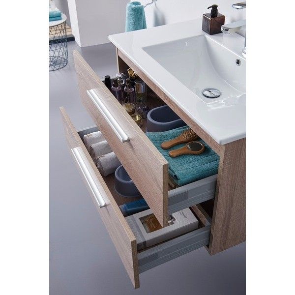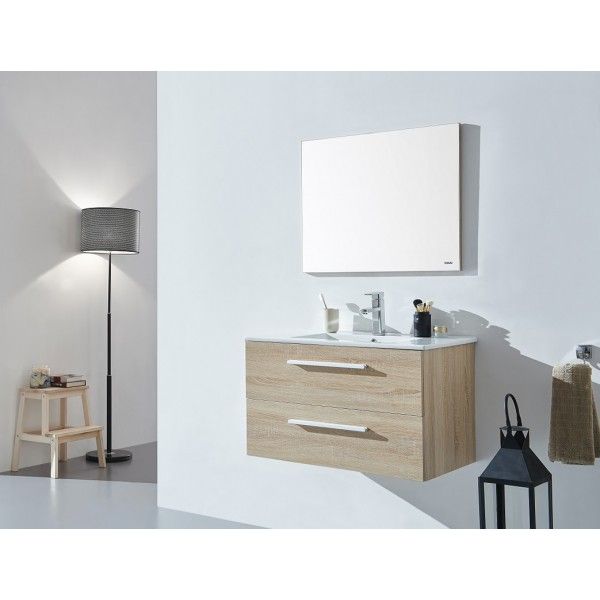 1. Многослойное дерево, 2. Два выдвижных ящика с доводчиками 3. Цвет: светлый дуб. 4. Зеркало с полкой. 5.Раковина в комплекте.