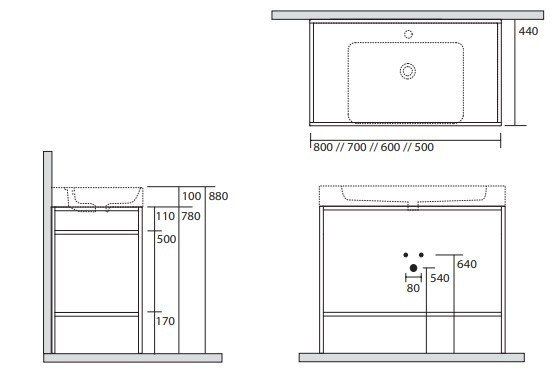 Консоль под раковину Kerasan Cento 924331 Kerasan Cento 924331 Металлическая напольная консоль с металлической полочкой под раковину Cento 353301, размер 800х450х780 мм, цв. черный матовый.