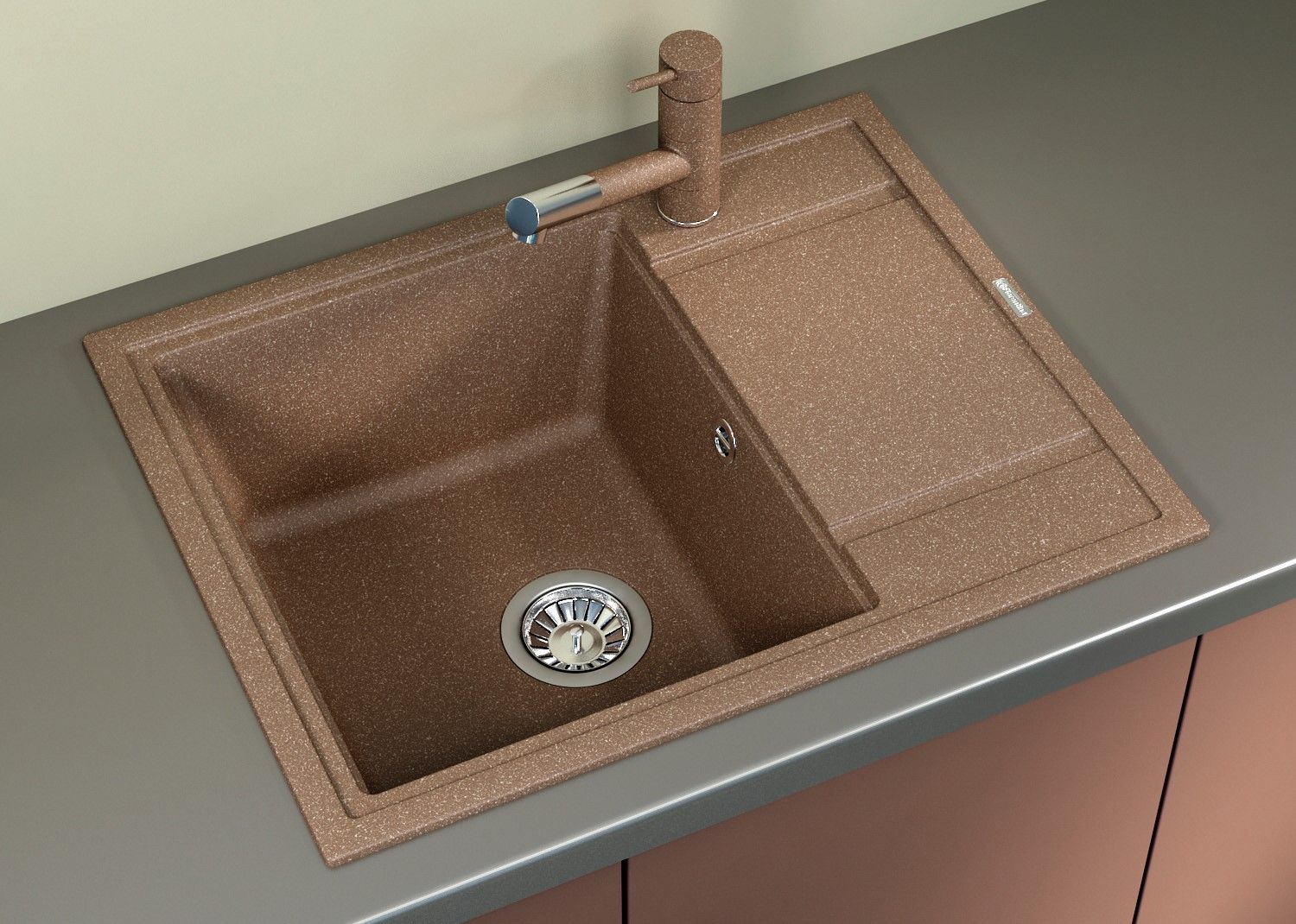 Классическая врезная мойка для кухни Флорентина модель Липси 650 с крылом выполнена из искусственного камня.