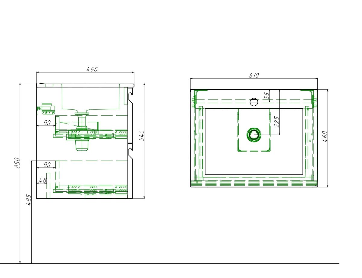 Габариты (ДхШхВ), мм: 610х460х1701 отверстие под смеситель, встроенный канал переливаДля сифона диаметром 1 1/4 x 32 ммМонтаж накладной (на тумбу)Расположение смесителя: по центру