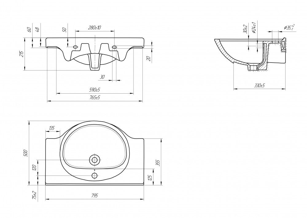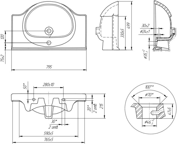 Отверстия под смеситель:1