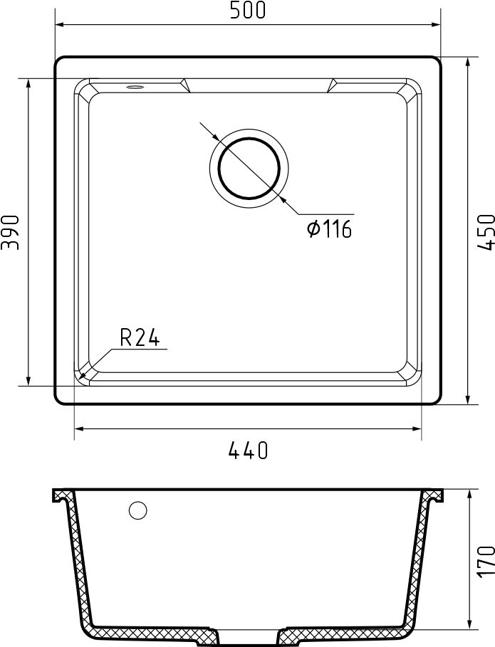 Комплектация: сливная арматура с корзинчатым вентилем (Ø 3.5""/90 мм), тех.паспорт, гарантийный талон."