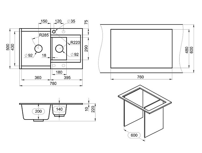 Мойка кухонная Granula 7808, ГРАФИТ Подробнее