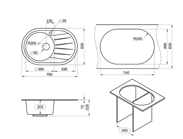 - Отверстия под смеситель:1