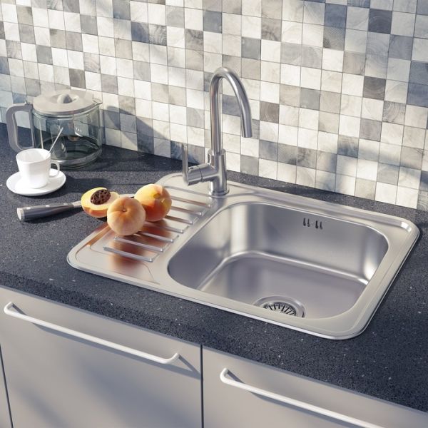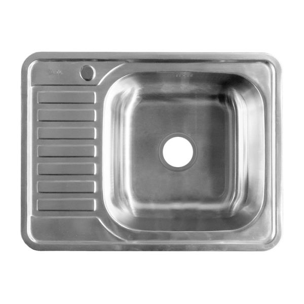Стальная мойка Basic с матовой сатиновой поверхностью размером 65х50 см и крылом, на котором удобно сушить вымытую посуду, овощи или фрукты. Чаша глубиной 17 см расположена справа.