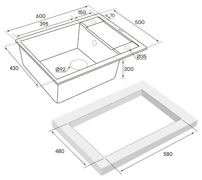 Материал мойки не нужно герметизировать, и, поскольку он не пористый, то он максимально устойчив к окрашиванию.Функциональное плоское крыло мойки