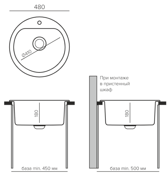 Кварцевая, врезная круглая мойка для кухни Bond-480, отличается максимально увеличенной чашей для данного размера. Внешний диаметр 480 мм., внутренний диаметр 410 мм, в которой вы с легкостью можете разместить большую и объемную посуду, при этом данная модель поместится даже на самой маленькой кухне. Модель имеет кипельно белый цвет без точек и вкраплений. Глубина мойки составляет 180 мм. Вмещается в кухонную базу от 45 см.( в случае, если ваша тумба крайняя, тогда минимальный шкаф 50 см.)Для вашего удобства имеется заводское отверстие для смесителя. В комплектации отсутствует сливная арматура, поэтому вы можете подобрать себе ту, которая нравится именно вам.Гарантия 3 года. В коллекцию QuartzBond вошли проверенные годами, не теряющие своей популярности, модели кухонных моек.Размеры мойки (ШхДхГ): 480х480х190 мм.