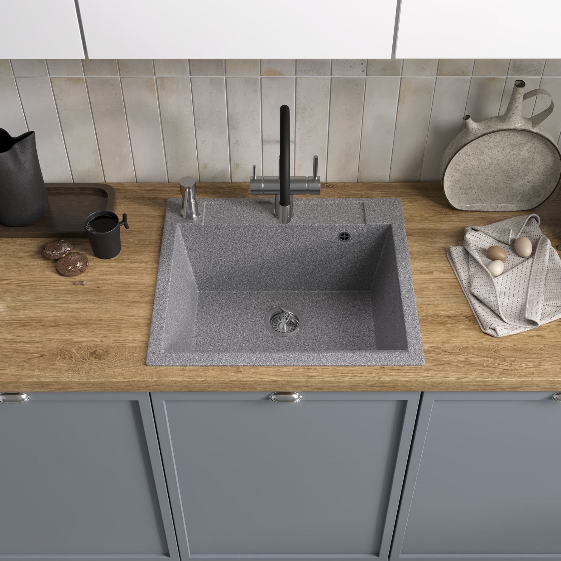 Мойка кухонная Reflexion Cubi 55-GR RX1555GR гравий