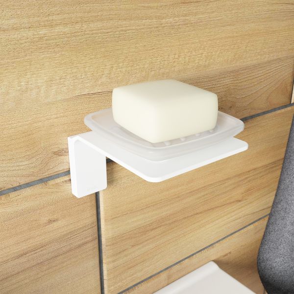 Мыльница Slide стильного белого цвета. Благодаря четким прямым линиям и функциональному дизайну подойдет для интерьера любой современной ванной комнаты. Мягкая уплотнительная прокладка надежно фиксирует стеклянную мыльницу в держателе и предотвращает случайное выпадение и повреждение изделия.