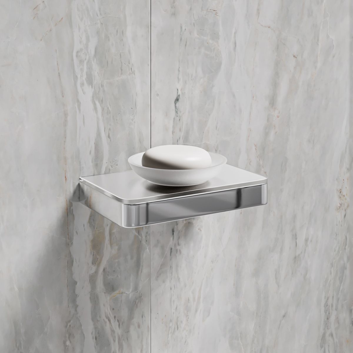 Мыльница Lemark Glass Line 9741037 с держателем хром/белое стекло купить