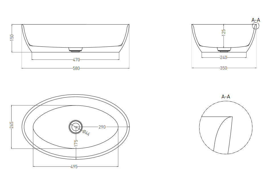 Накладная раковина Salini Alda 01 S-Sense 110611GRH 58см RAL снаружи