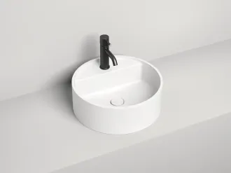 Раковина цилиндрической формы ARMONIA в напольном и накладном исполнении — универсальное решение для любого санузла. В версии TOP модель комплектуется полочкой для установки смесителя, которую по желанию можно использовать и для туалетных принадлежностей. Прямая или скруглённая форма раковины соответствует актуальным тенденциям дизайна и делает выбор беспроигрышным. Напольные версии могут быть установлены со сливом как в пол, так и в стену.