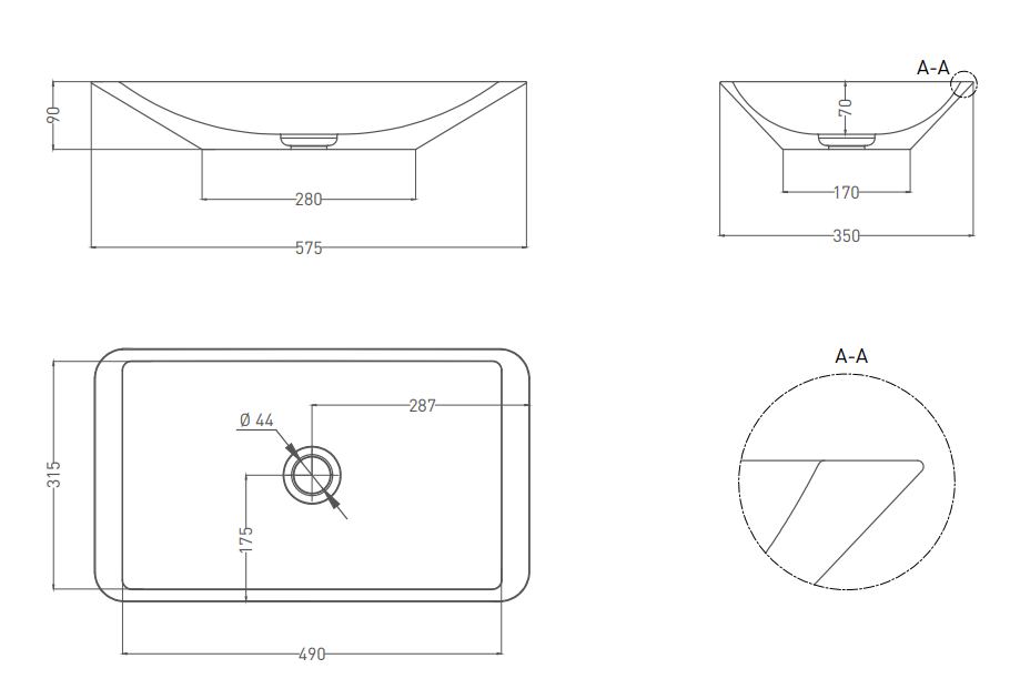 Накладная раковина Salini Callista 03 S-Stone 1101207SMRH 58см RAL снаружи