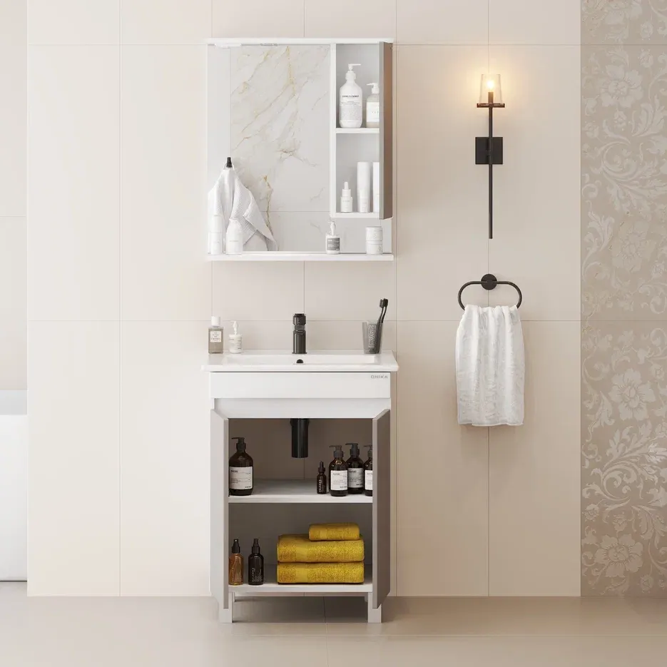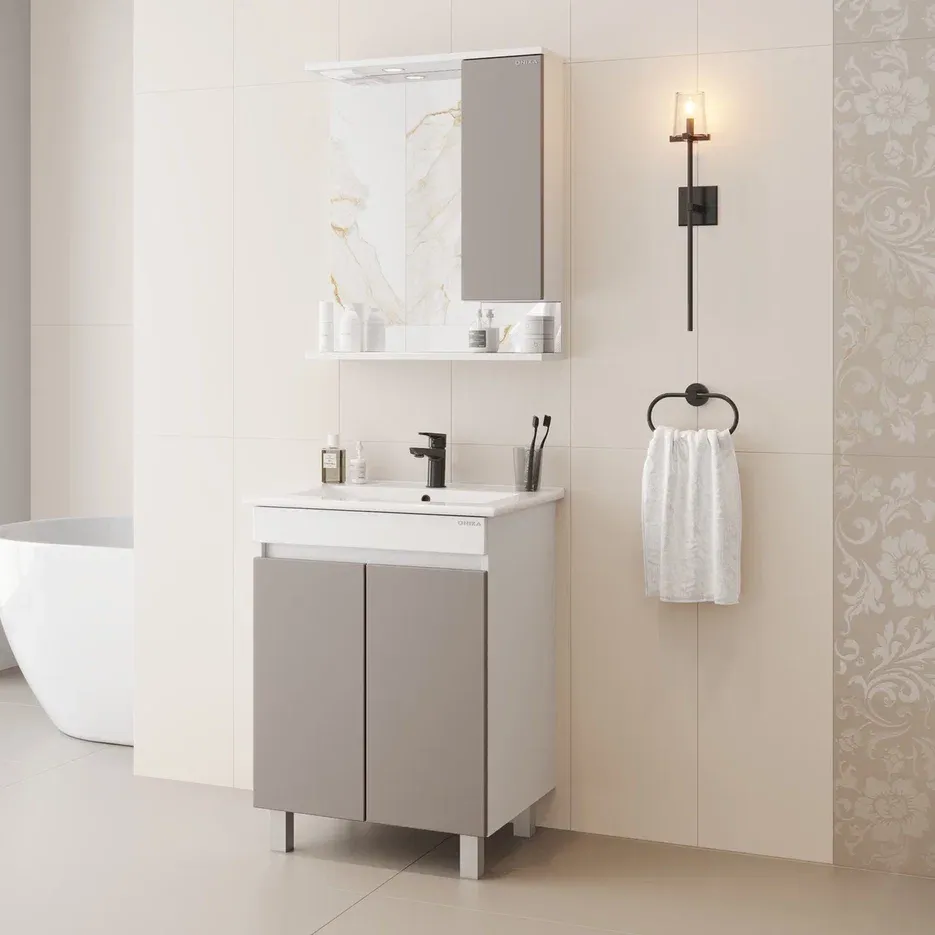 Напольная тумба Марви 60 в цвете мокко поможет обустроить пространство ванной комнаты и привнесет в интерьер ощущение тепла и уюта.