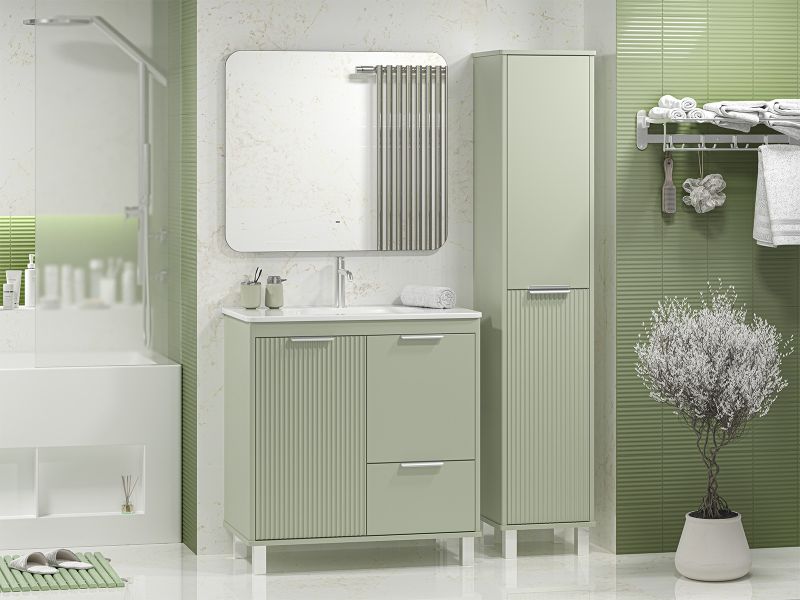 RISACCA pistachio - 80 Тумба напольная 2 дв.1 ящ. мат. эмаль + раковина