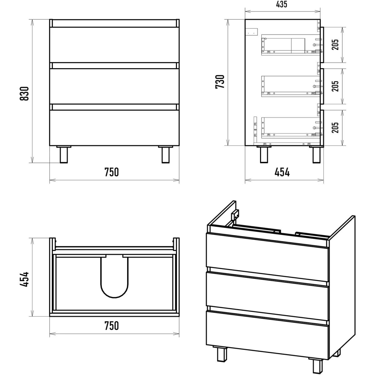 Напольная тумба под раковину Brevita Victory 75 VIC-07080-0103Я белый