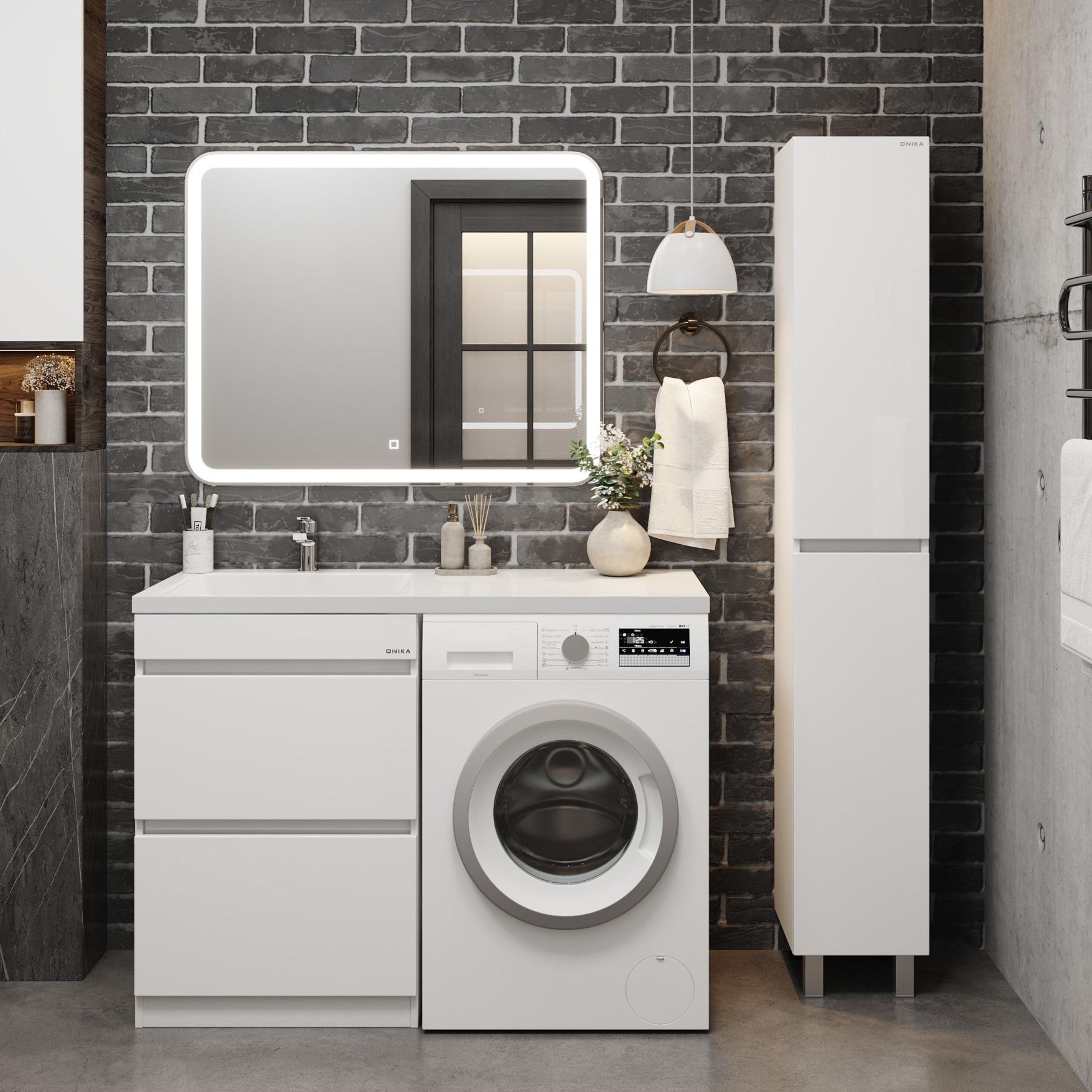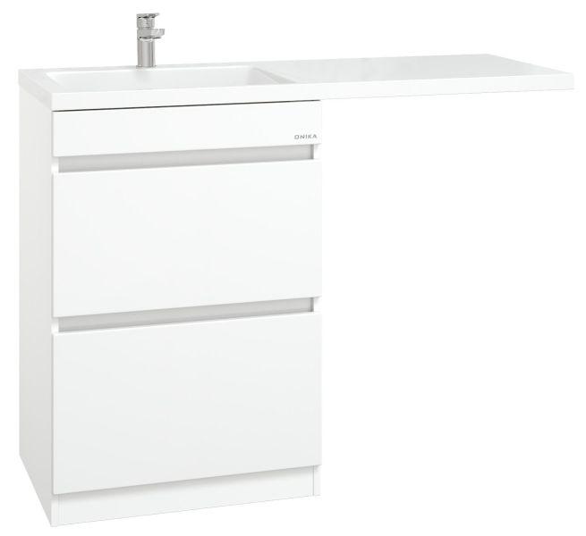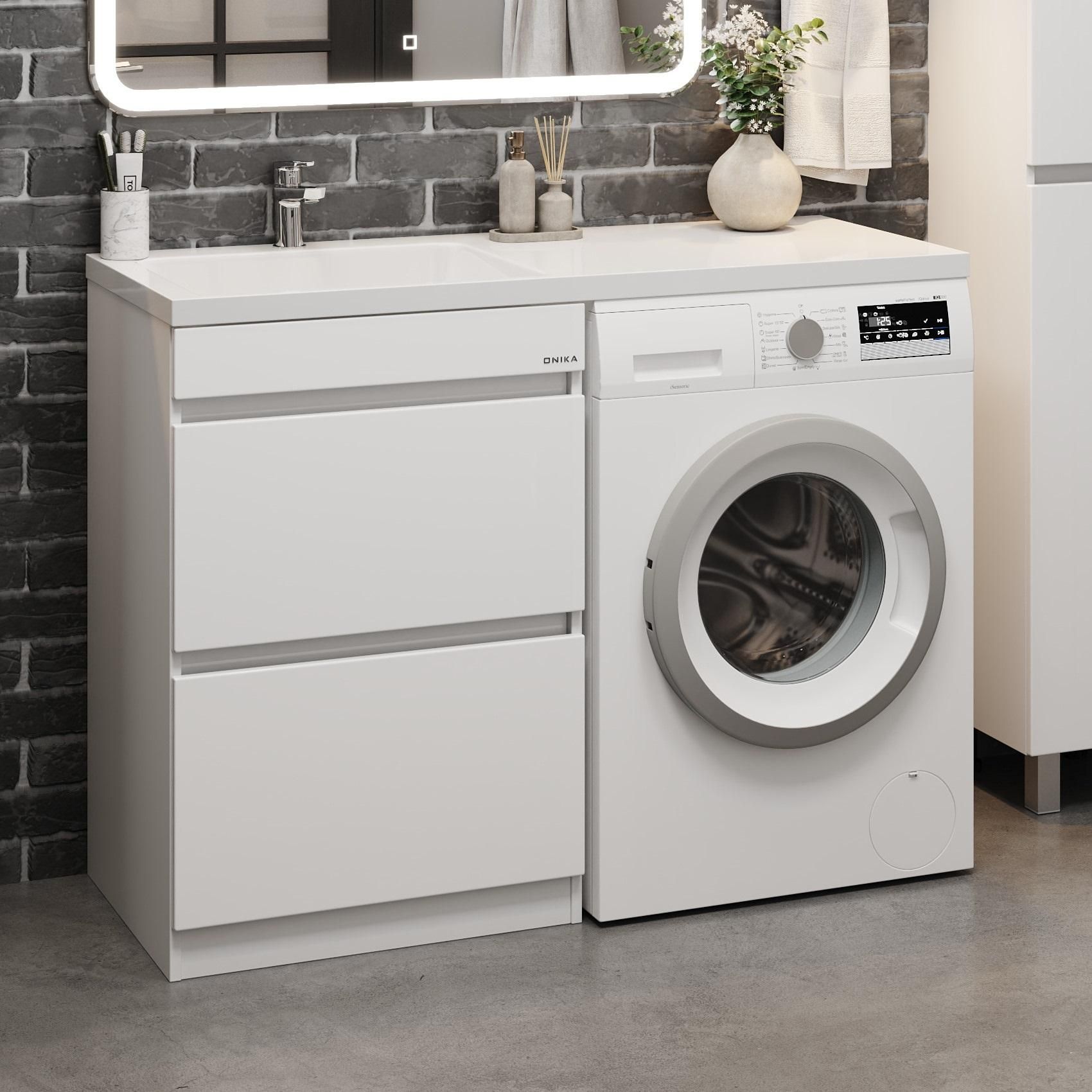 Напольная тумба Onika Милтон 58 станет отличным решением для совмещения со стиральной машиной.