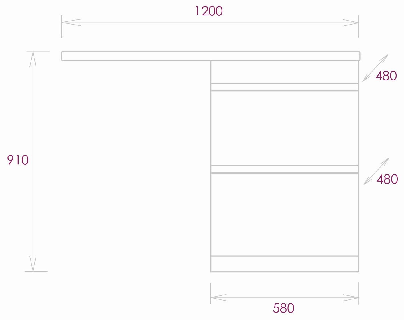 Размеры тумбы без учета раковины 58х48х87 см.