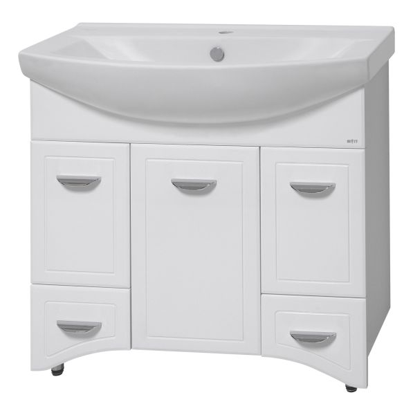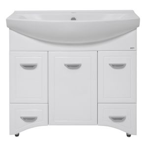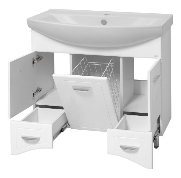Напольная тумба под раковину Misty Дрея 85см с бельевой корзиной белый