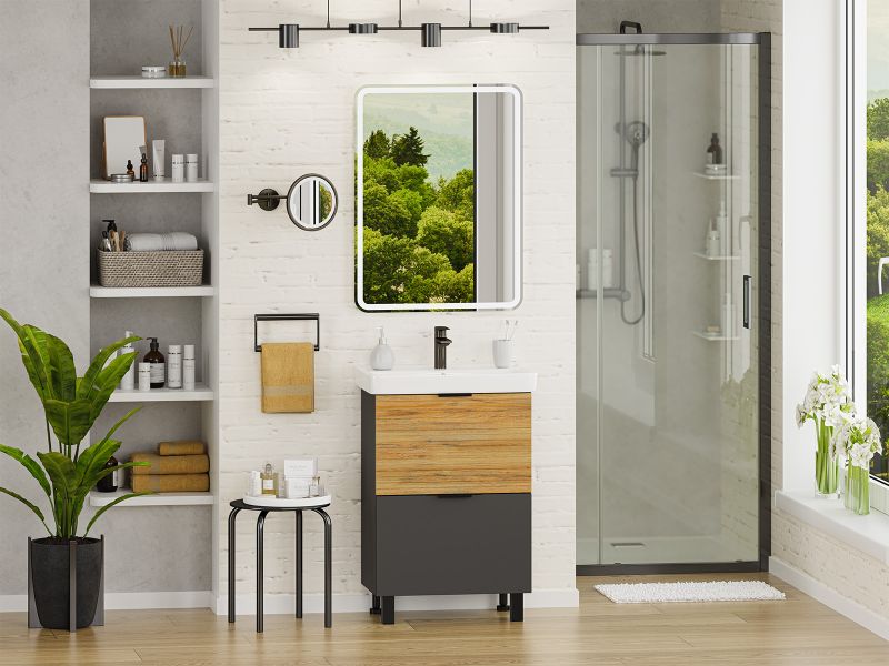 Напольная тумба под раковину Misty Форест 60см дуб Вотан/антрацит