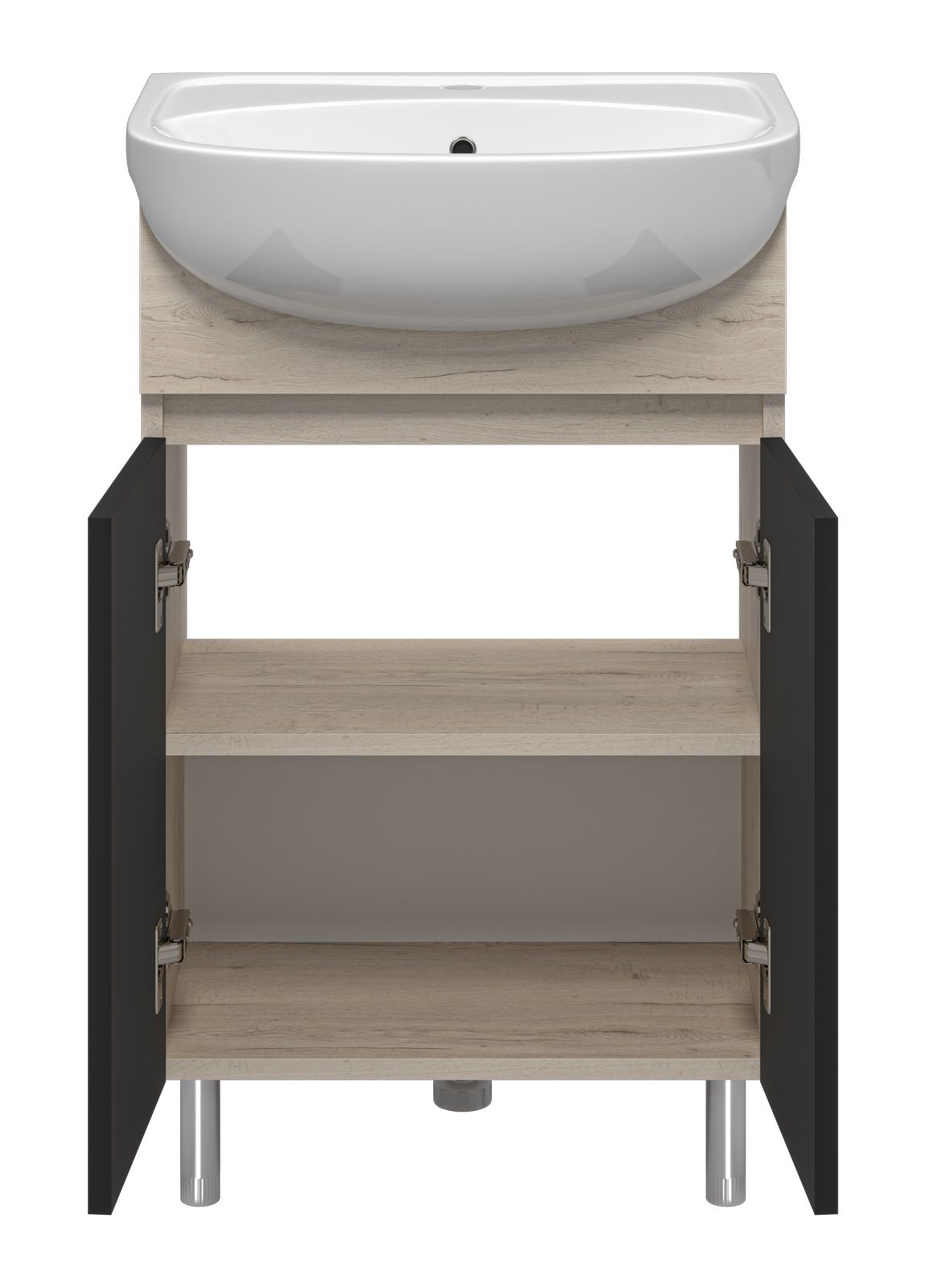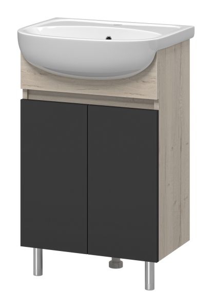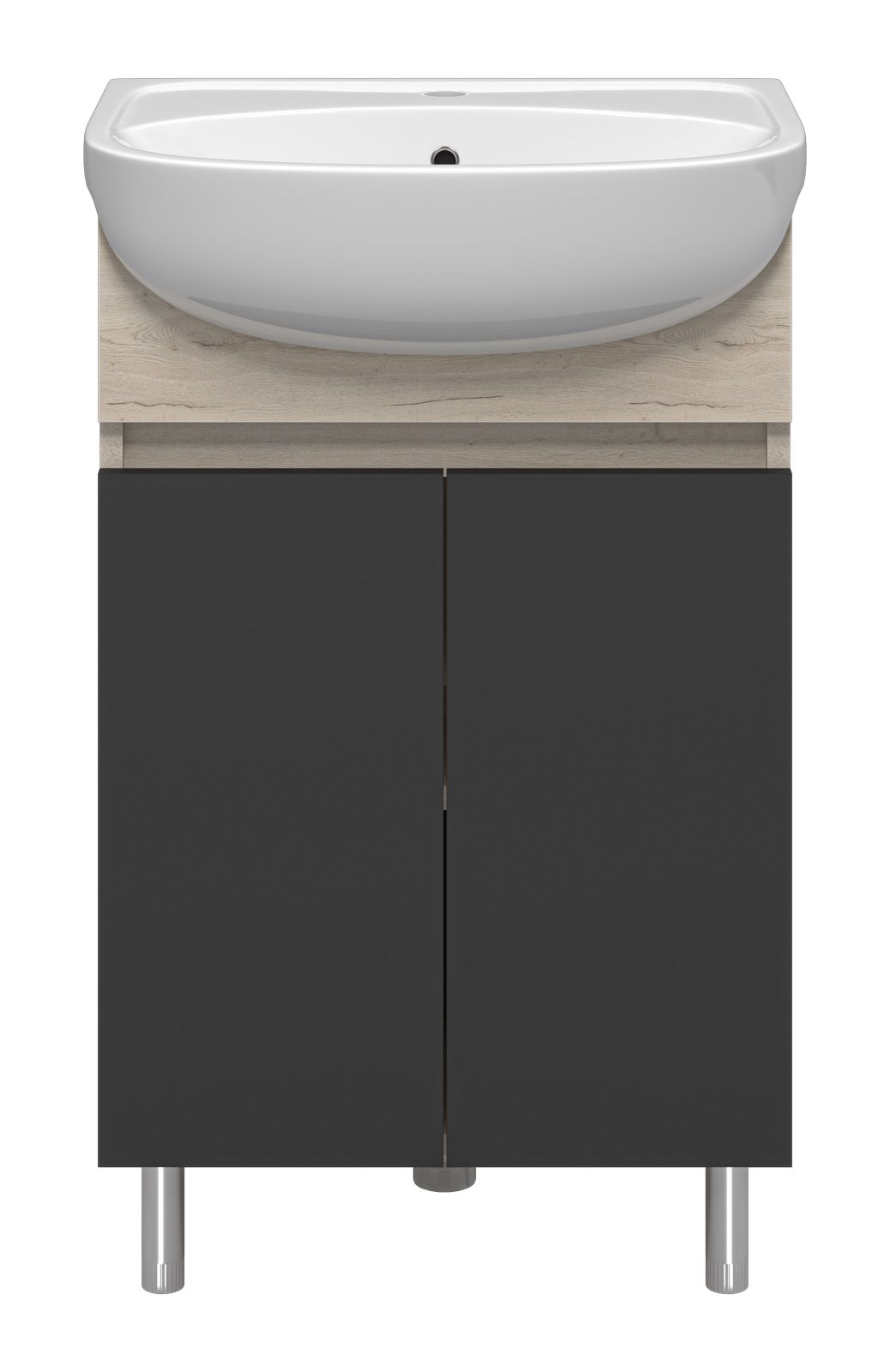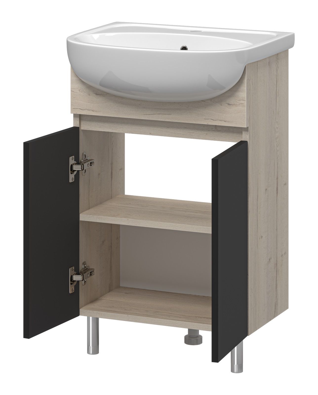 Напольная тумба под раковину Misty Поло 50см антрацит/дуб Галифакс белый