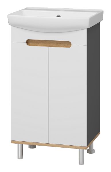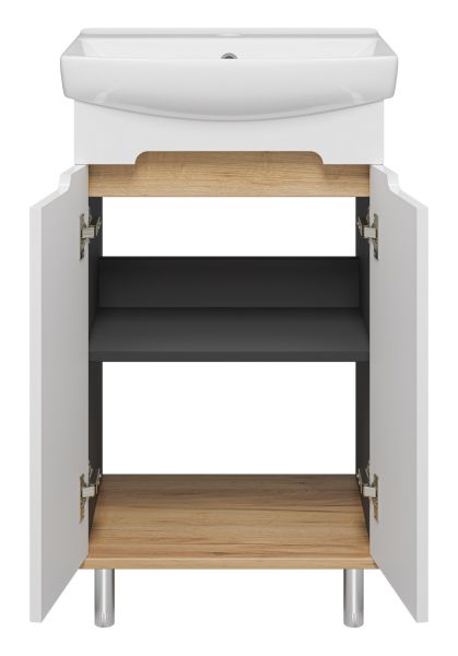 Напольная тумба под раковину Misty Сканди 50см белый/дуб крафт золотой/антрацит