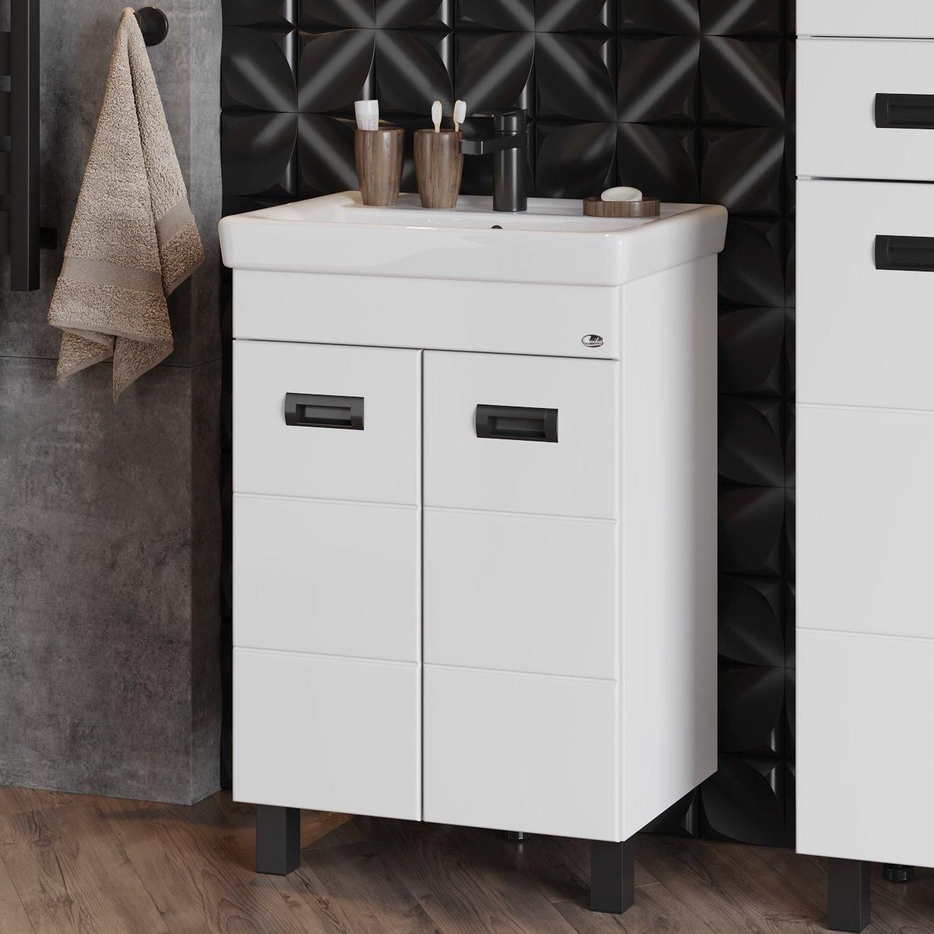 Напольная тумба под раковину Onika Балтика-Квадро Black 105552 55см белый купить
