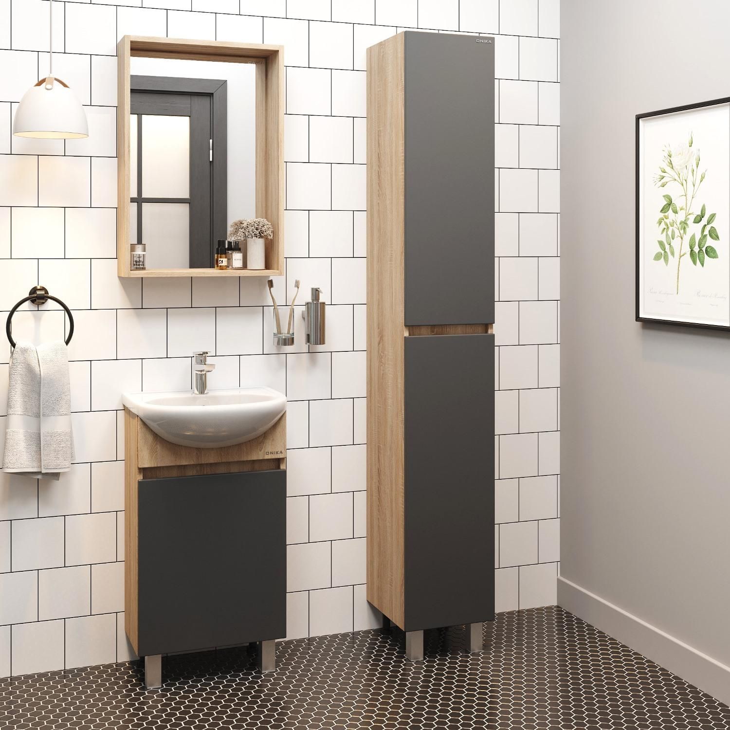 Напольная тумба под раковину Onika Милтон 104512 45см серый/дуб сонома купить
