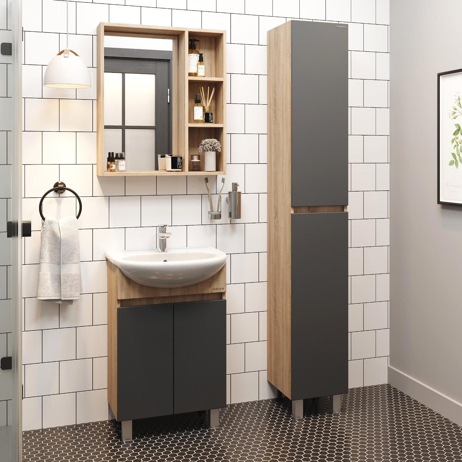 Напольная тумба под раковину Onika Милтон 106147 60см серый/дуб сонома купить