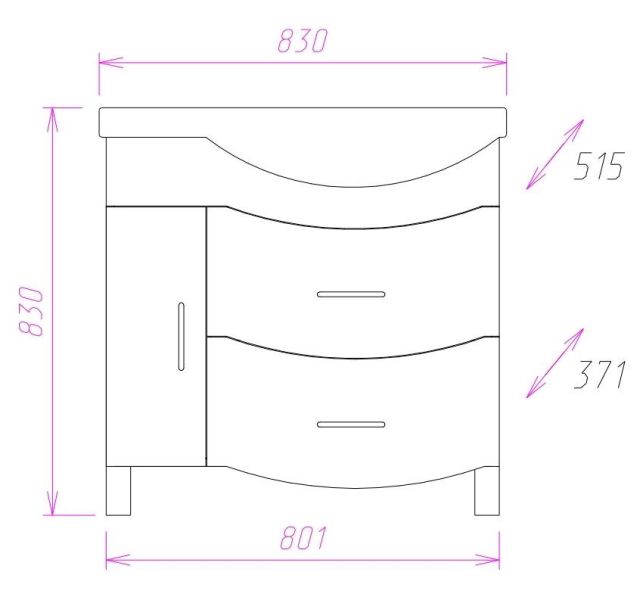 Размеры тумбы без учета раковины и ножек: 80x37x72 см.