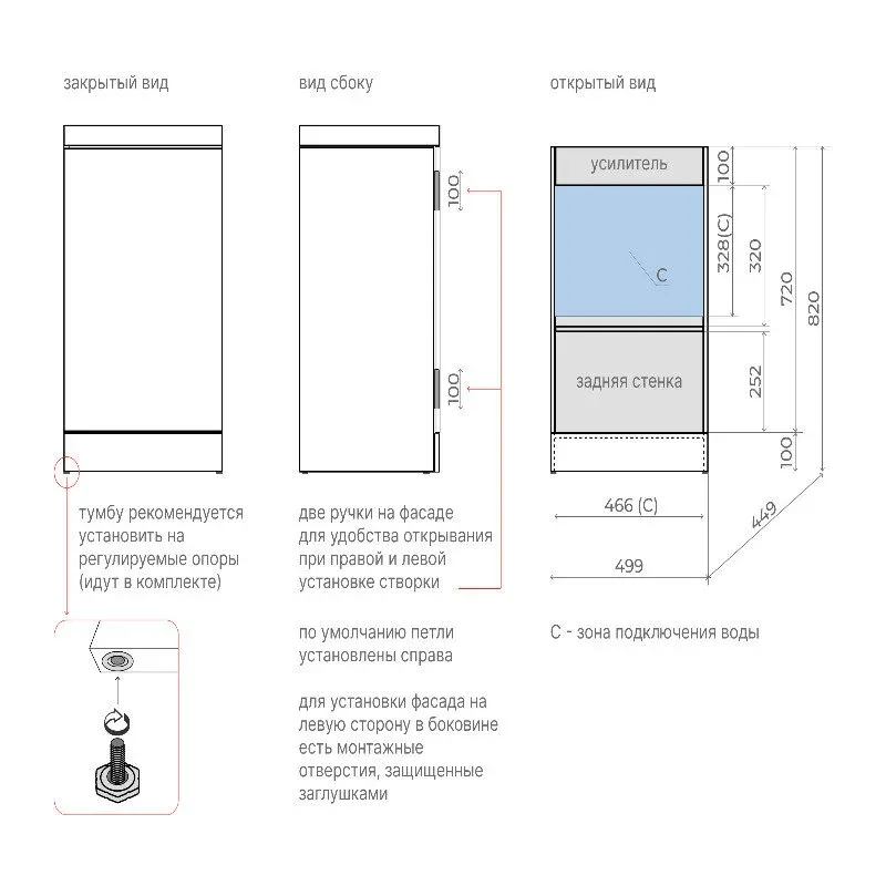 - Монтаж: напольный