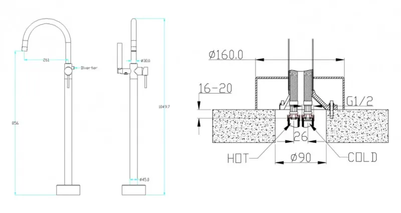 Напольный смеситель для ванны Boheme Uno 469-CB брашированная медь