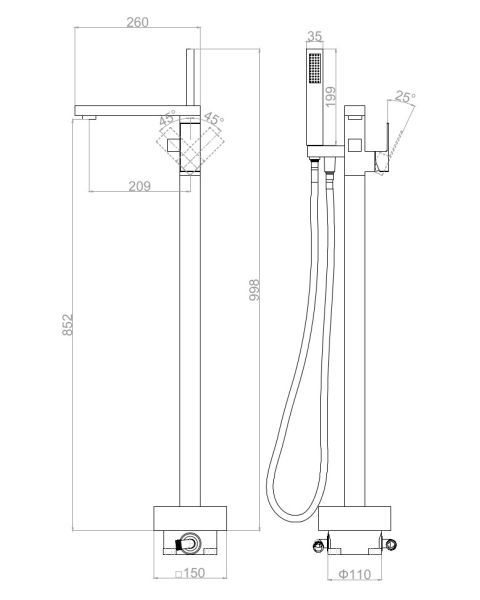 Напольный смеситель для ванны DQ Bayern.Liszt DA1516001 хром