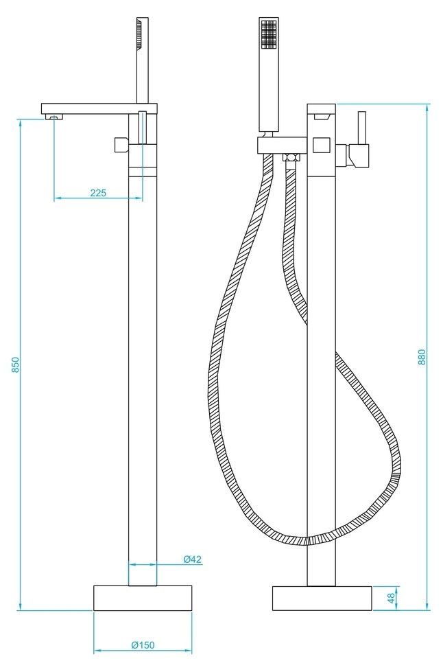 Ощутите всю роскошь стиля с напольным смесителем! Возможность установить смеситель в любую точку рядом с ванной позволит воплотить в жизнь любую планировку и сохранит целостность стен.Этот комплект мы разработали «под ключ» - в нем есть всё: стойка, смеситель и ручной душ.Длинный шланг 1.5 м, очень мягкий и гибкий, подарит ощущение свободы пользователю даже самого высокого роста, а насыщенная воздушными пузырьками вода, благодаря встроенному аэратору, позволит получить больший охват даже при компактном размере лейки.Кроме того, аккуратное рассеивание воды исключает возможность разбрызгивания, что важно, когда у вас отдельно стоящая дизайнерская ванна.