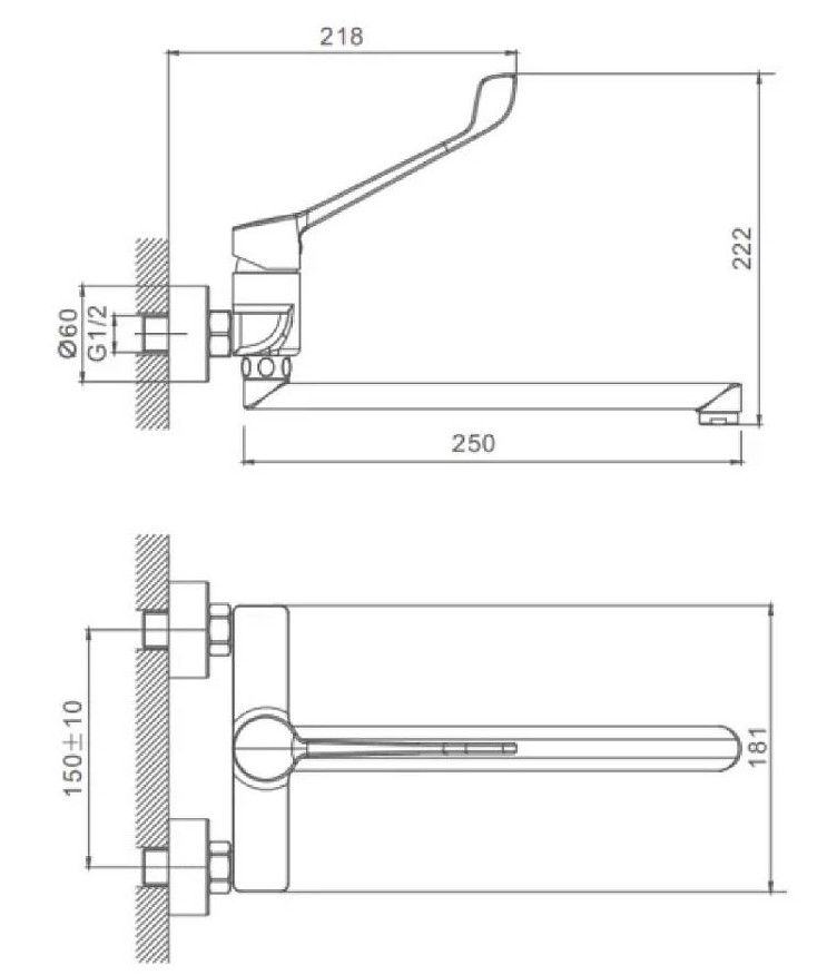 Настенный смеситель для раковины Splenka S08.21 с хирургической ручкой хром купить