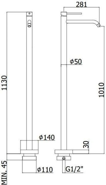 Смеситель для раковины напольный без БАЗЫ арт LIG030, ХромКомплектация: