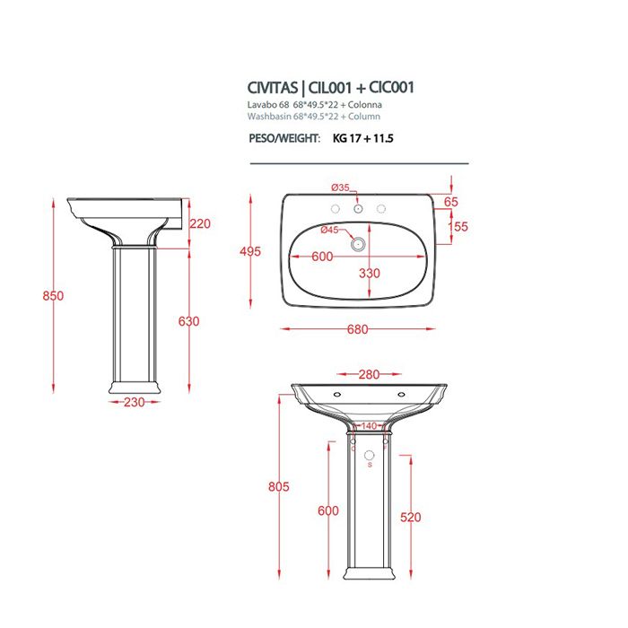 Пьедестал для раковины Artceram CIVITAS CIC001 01 00 bi*1 белый купить